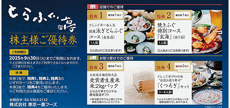 • とらふぐ亭 東京一番フーズ 株主優待