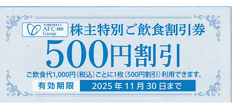 • AFC-HD 飲食割引券 500円