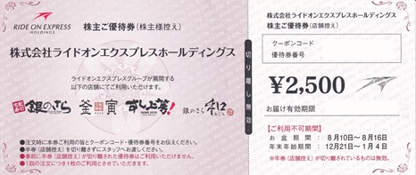 • 銀のさら 株主優待 2500円
